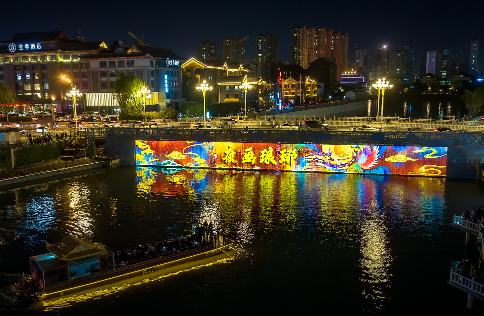 《夜画琅琊》是全国首部以东夷文化和魏晋风貌为主题的行进式水上实景演出,把4.5公里涑河变成了流动的舞台,依托涑河水域,以游船为载体,融合歌舞、装置艺术、光影科技与水特效呈现“六幕十二景”。