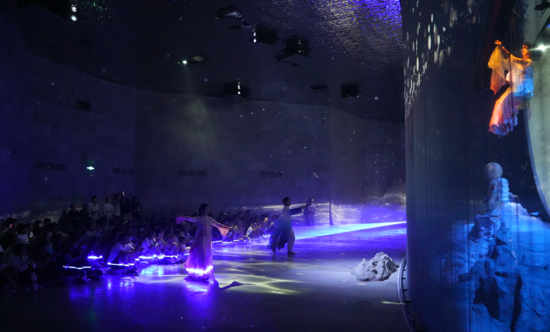 一场演出读懂“月的浪漫”!《故乡的月》在半月形艺术空间里藏满巧思,360环屏、纱幕与地面投影联手,把“虚实交融”的月夜搬进现实。
