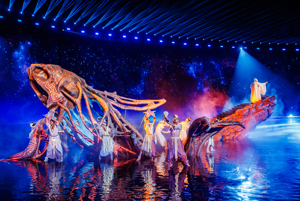 这场秀以船为载体,串起海洋文化、齐鲁民俗与商贸传奇,搭配120米环形舞台、旋转观众席和海浪模拟系统,为观众打造“入场即入海”的沉浸式体验。
