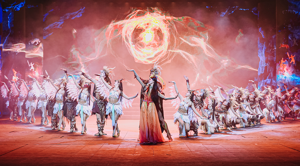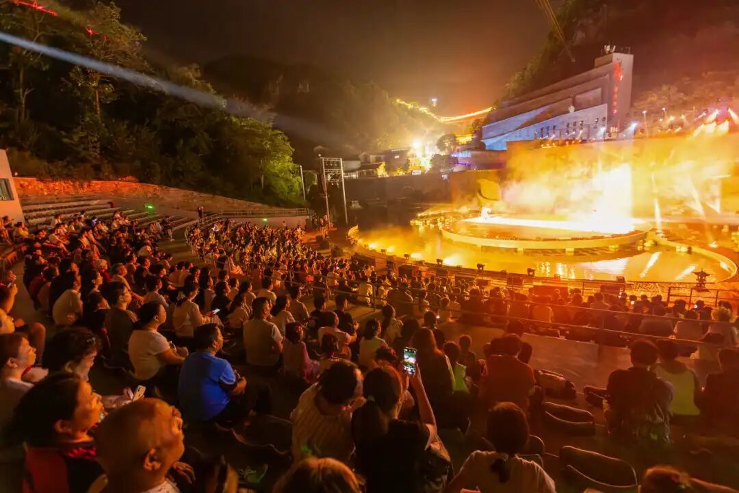 2025年还增加了非遗火壶表演、小丑互动等暖场环节,将演出时长延长至45分钟,提升了演出项目的整体吸引力与品牌价值。截至目前,已累计演出1796场,接待游客超163万人次。
